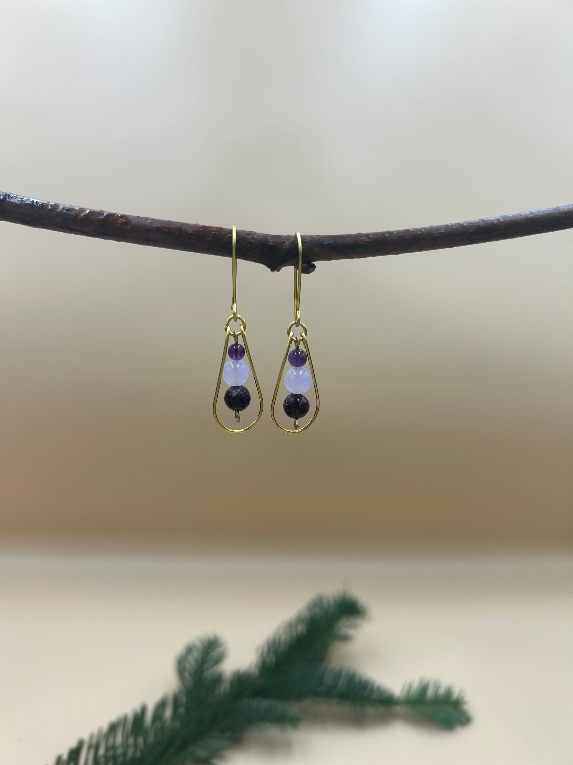 disse håndlavede øreringe tager udgangspunkt i naturens vanddråber. Perledroppet i midten giver et fint farvespil til smykket